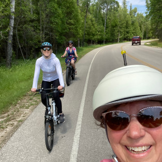 The first night treated us to a pretty impressive wind and lightning storm. We were battened down and Perseverance barely noticed it but the sailors across the dock spent most of the night fussing with their fenders and shining lights up their masts. We all slept in the next day and then set off for a bicycle tour of Washington Island. Davi and Lauren had their fancy fat tire ebikes. Kent and Hannah took the folding ebikes donated by the Connecticut Spragues, and us old folks ended up on the tandem powered solely by our own muscles. Jim noted that there is some pretty significant terrain on the Island. Fortunately we chose not to climb the largest hill but we were riding into the teeth of some strong headwinds for much of trip. The kids were nice and didn't leave us in the dust till the last leg.